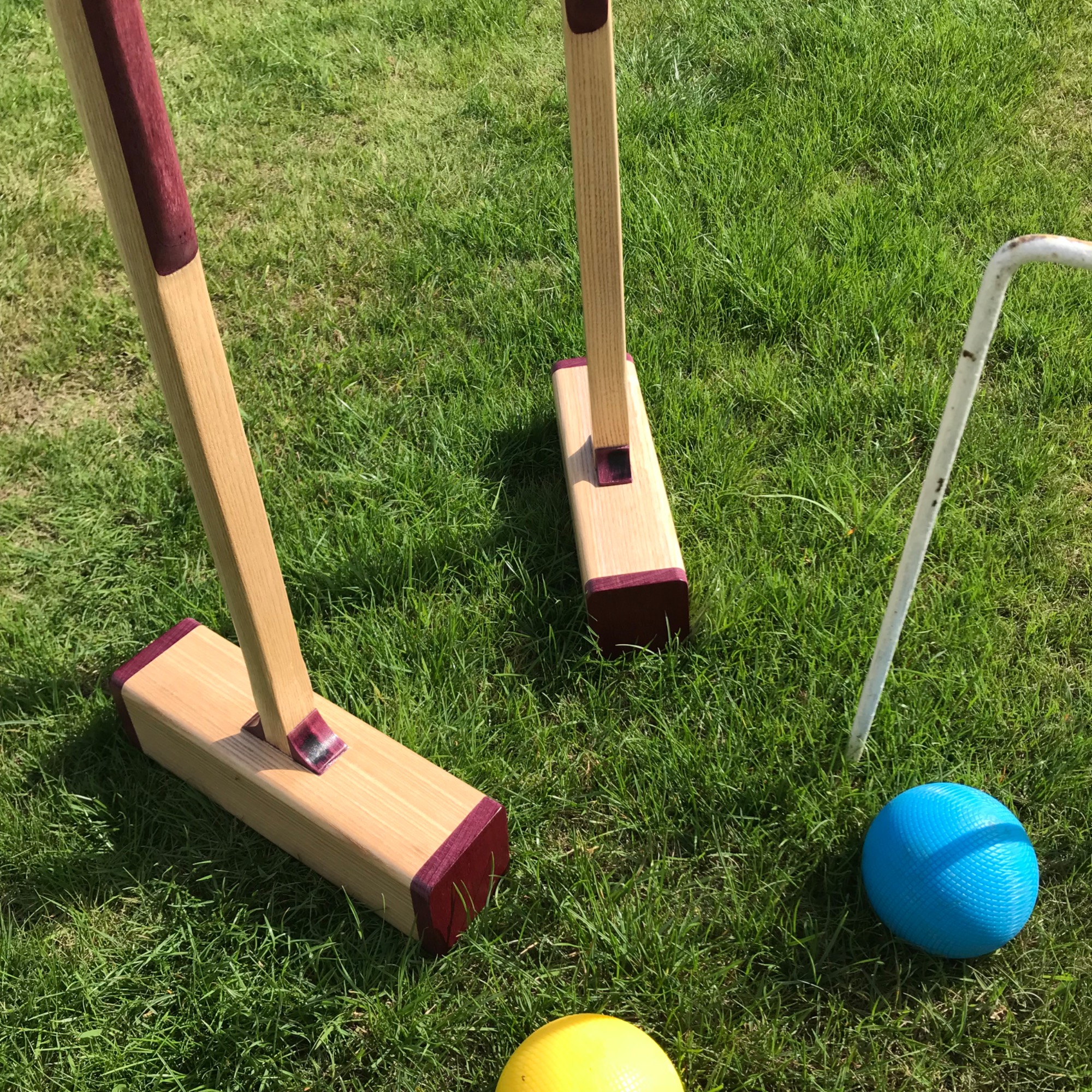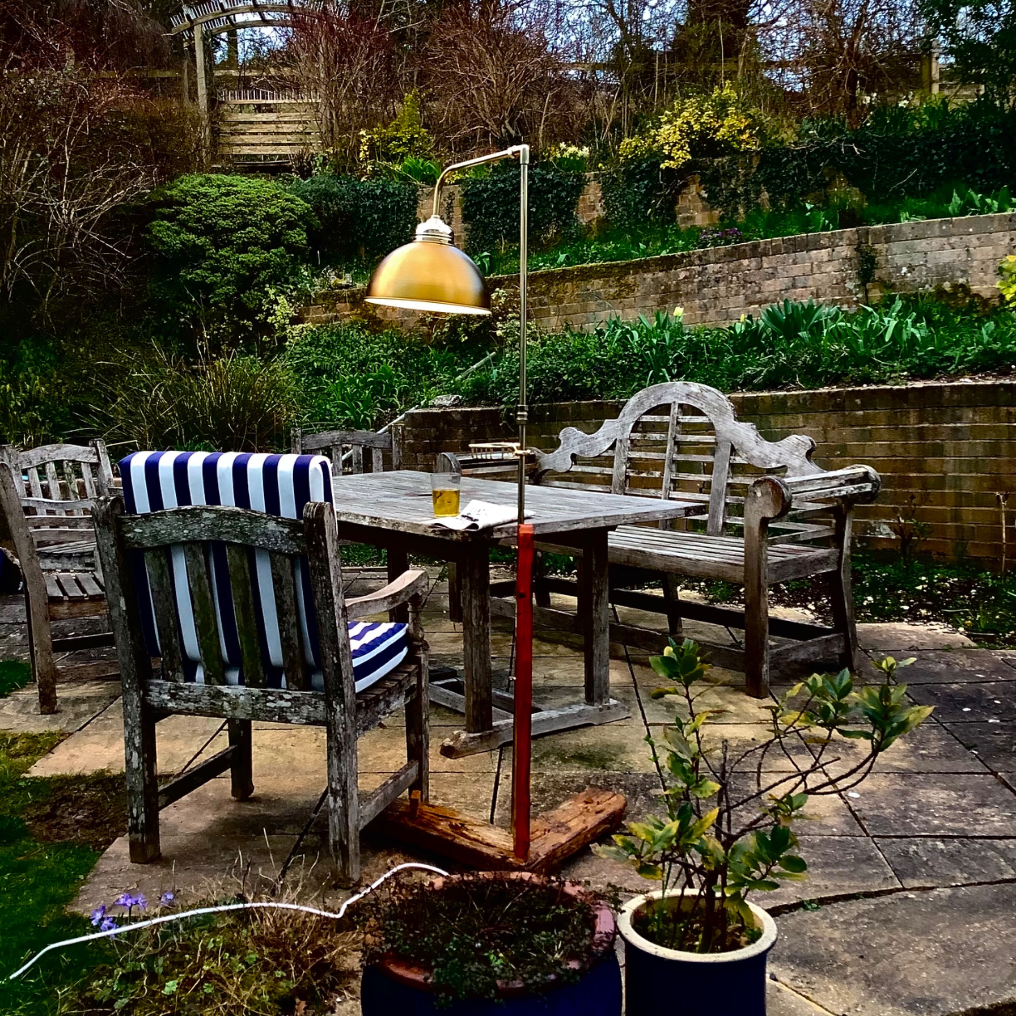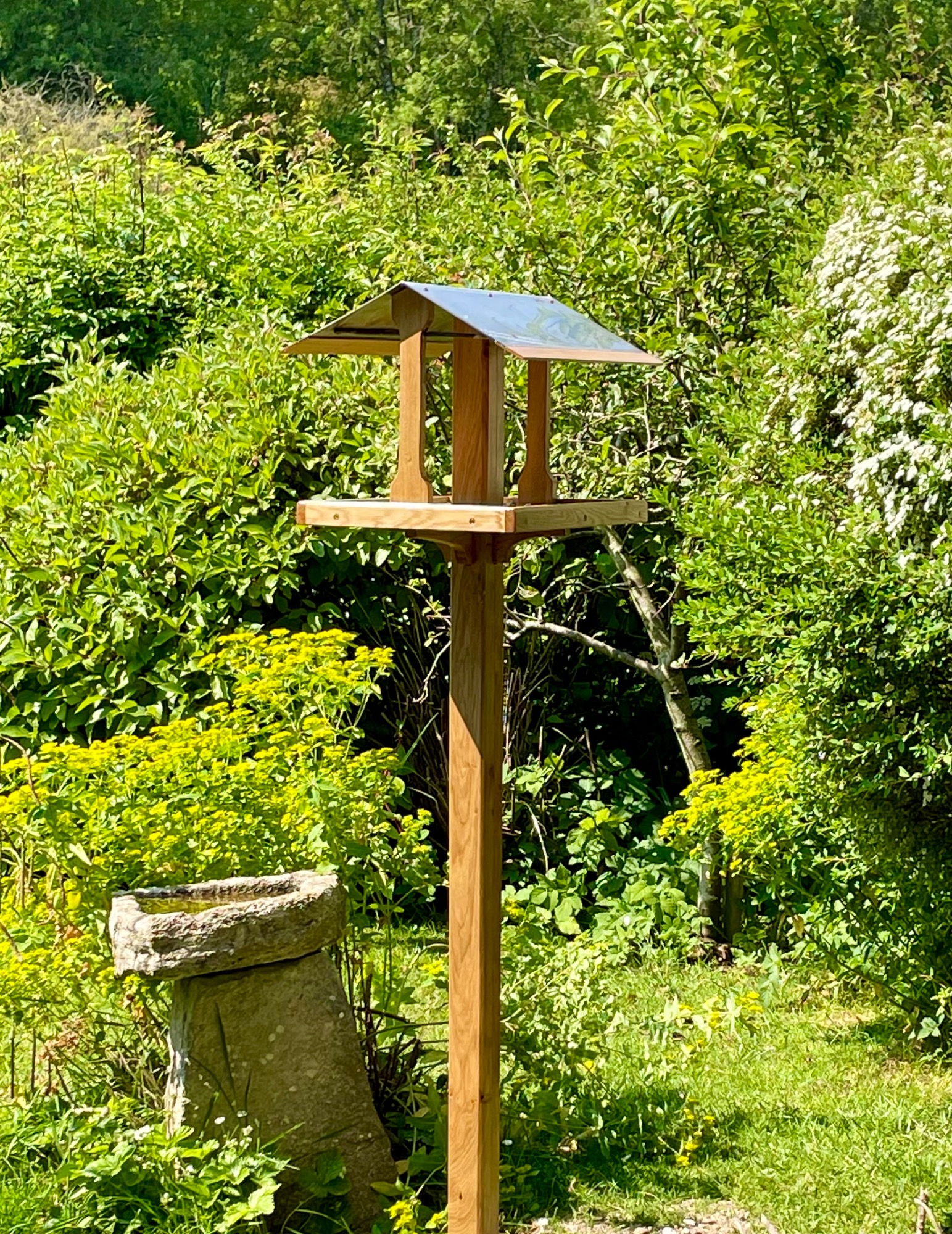The great outdoors! Among many projects for our green spaces I have made planters, bird tables and even croquet mallets (those shown are edged with purpleheart for some unusual colour). I can refurbish favourite tools that are showing the signs of age and use — the trowel handle shown was not only replaced but also extended to give better purchase. The garden light was upcycled froman old brass shower head, set into a driftwood base.