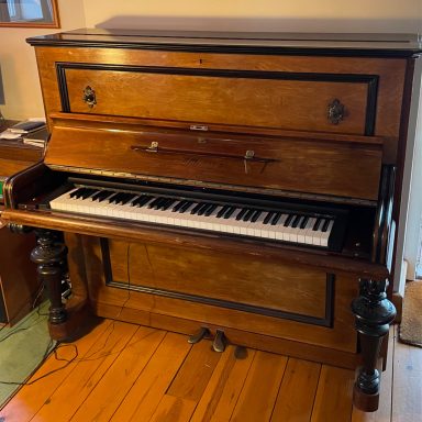 Mirrors and frame make excellent presents, specially when the wood used has a story attached. The lime in the first mirror shown below, a wedding present, came from a tree that had fallen in the graveyard of the church where the wedding took place. The other frame was made from yew from the clients garden. In between are one of many boot jacks I’ve made from recycled wood, and (an unusual commission) a piano I converted by replacing the original keyboard with an electric one.